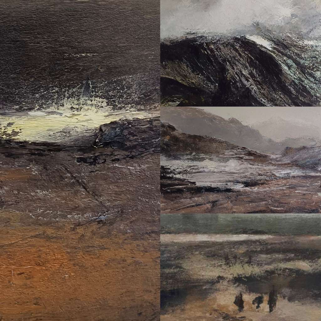 El paisaje, tanto natural como emocional, constituye el eje central de estas pinturas. No se presenta como una representación literal, sino como una construcción simbólica que refleja la percepción humana. El autor se inspira en el acto de observar el paisaje desde la distancia, una acción que a menudo nos da la ilusión de objetividad, como si pudiéramos separarnos de aquello que contemplamos. Sin embargo, esta serie nos recuerda que el paisaje exterior no es más que un reflejo del paisaje interior.